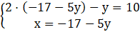 Za y podstawiamy –4 do pierwszego równania: