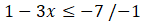 . Aby nierówność zachodziła, to wyrażenie w wartości bezwzględnej musi być większe bądź równe 7 lub mniejsze bądź równe –7, zatem: