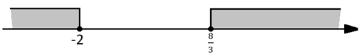 Zaznaczamy na osi liczbowej zbiory rozwiązań nierówności i ich sumę, która jest rozwiązaniem nierówności