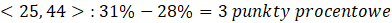 Do policzenia różnicę w punktach procentowych, wystarczy byś odjął od siebie procenty. Do obliczenia zmian w procentach musisz zastosować wzór na zmianę procentową.