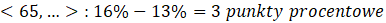 Oblicz zmianę w punktach procentowych i w procentach zmianę wielkości grup osób w wieku od 25 do 44 lat oraz osób w wieku 65 lat i więcej.