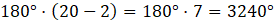 Oblicz sumę miar kątów wewnętrznych: dwudziestokąta.
