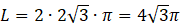 Najpierw odczytujemy wartość „r” z równania. Następnie korzystamy ze wzoru na długość okręgu