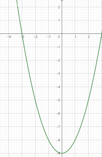 Funkcja przyjmuje wartości ujemne dla x ϵ (-3, 3)