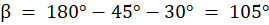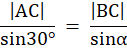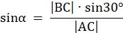 Korzystając z twierdzenia sinusów i z tego, że suma kątów wewnętrznych w trójkącie jest równa 180°, wyznaczasz miary pozostałych kątów w trójkącie. Kąt ABC jest równy 30°, kąt BAC jest oznaczony jako α, natomiast kąt ACB jako β.