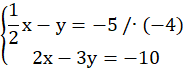 Pomnóż pierwsze równanie przez (-4), aby otrzymać przy niewiadomej x liczby przeciwne, a następnie dodaj do siebie równania.