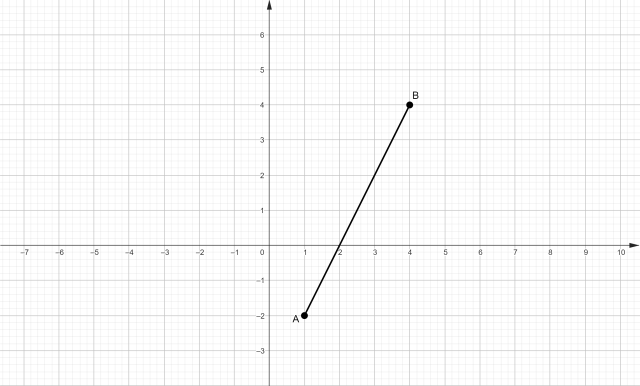 Narysuj wykres funkcji f, która jest odcinkiem o końcach A(1, 2) i B(4, 4). Odczytaj miejsca zerowe, zbiór argumentów oraz, dla których wartości funkcja przyjmuje wartości nieujemne.