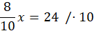 Oznacz liczbę uczniów w klasie jako x. Mnożąc obustronnie przez 10 i dzieląc przez 8 znajdziesz szukaną liczbę.
