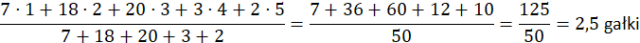 Aby policzyć średnią, należy dodać do siebie wszystkie gałki sprzedane tego dnia i podzielić przez liczbę klientów: