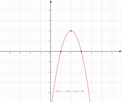 Sporządź szkic wykresu f(x) = –2(x – 1)(x – 3).