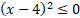 Z definicji wyrażenie postaci x2≥ 0. W tym przypadku jest nierówność w drugą stronę, więc dane wyrażenie może być równe tylko zeru. Stosujemy tuta WSM: a2 – 2ab + b2 = (a – b)2.