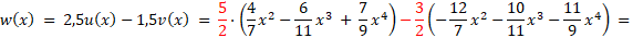 Wyznacz wielomian postaci w(x) = 2,5u(x) – 1,5v(x), wiedząc, że