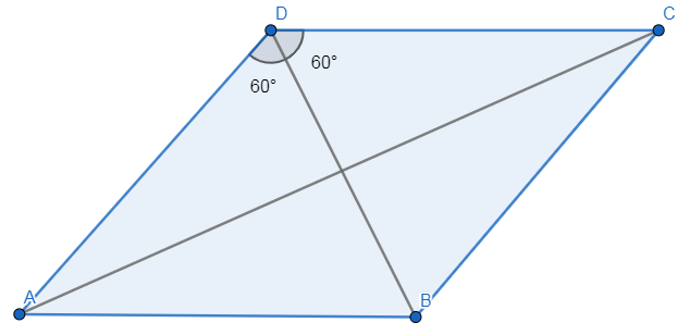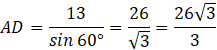 Poprowadź drugą przekątną, która przetnie pierwszą pod kątem prostym. Kąt 120 stopni zostanie podzielony na dwa kąty po 60 stopni. Połowa przekątnej AC to 13. Otrzymasz zatem: