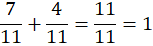 Aby dodać ułamki o jednakowych mianownikach, należy dodać ich liczniki, a mianownik pozostawić bez zmiany.