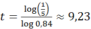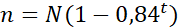 80 = 100(1 – 0,84t)