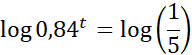 -20 = – 100 ∙ 0,84t / : (-100)