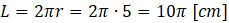 Znajdź długość okręgu, wiedząc, że jego średnica jest o 5 cm dłuższa od promienia.