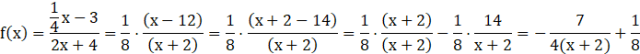 Wyznaczamy wartość współczynnika a funkcji wymiernej tak, aby punkt P spełniał to równanie. Asymptotami funkcji f, przesuniętej o wektor [p, q] są proste y = q oraz x = p.
