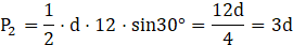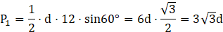 Korzystamy z wartości funkcji trygonometrycznych i twierdzenia Pitagorasa. Wzór na pole to połowa iloczynu długości podstawy i wysokości.