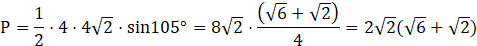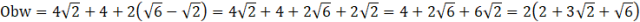 Wylicz sumę boków trójkąta i jego pole powierzchni, jeżeli
