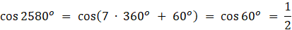 Aby obliczyć wartość cosinusa dla kąta 2580o, musisz zapisać go w postaci