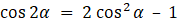 Kąt pomiędzy przekątną prostokąta a jego dłuższym bokiem ma miarę dwa razy mniejszą od miary kąta ostrego pomiędzy przekątnymi tego prostokąta. Zatem szukany cosinus kąta można wyznaczyć, odpowiednio przekształcając wzór