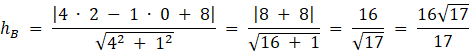 Odległość punktu B od prostej AC:
