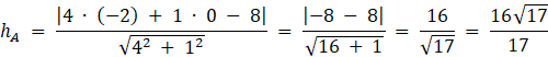 Odległość punktu A od prostej BC: