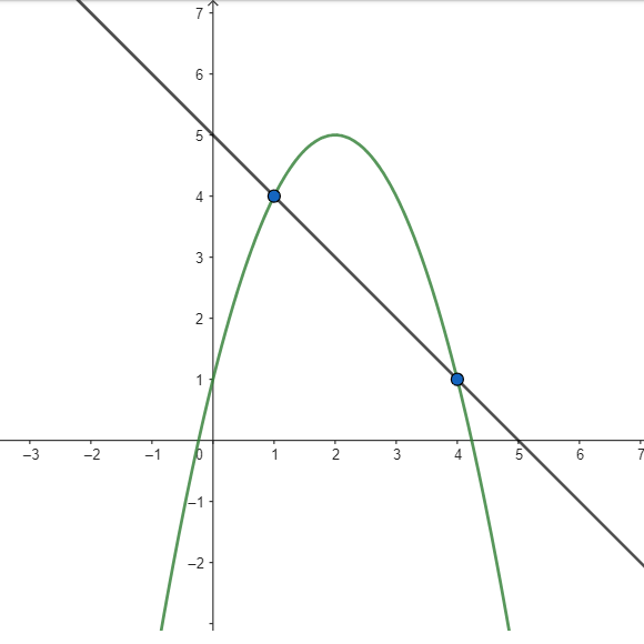 Sieczna wykresu funkcji y = ax + b przechodzi przez punkty (1,4) i (4,1). Jej współczynnik kierunkowy wyznaczysz następująco: