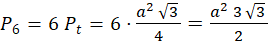 Pole sześciokąta jako sumy sześciu trójkątów równobocznych: