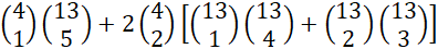 Skorzystaj z rozwiązania dla poprzedniego podpunktu, a następnie dodaj sytuacje, w której wybierasz karty w jednym kolorze. Zaczynasz od wyboru jednego spośród czterech kolorów: