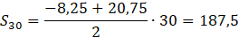 W tym zadaniu musisz obliczyć sumę trzydziestu początkowych wyrazów ciągu arytmetycznego, gdzie S10 = -37,5, S20 = 25.