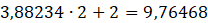 Tę odległość piłka pokona dwukrotnie oraz pokona jeszcze 2 m drogi na początku. Otrzymujemy więc: