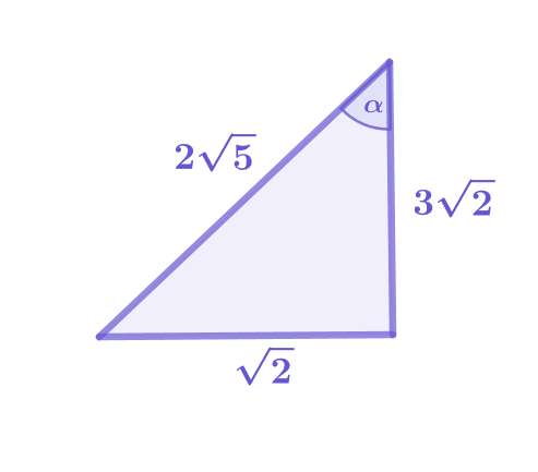 Szukanym kątem jest kąt α, ponieważ w każdym trójkącie najmniejszy kąt leży naprzeciwko najkrótszego boku.