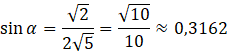 Wyznacz wartość sin α jako stosunek długości odpowiednich boków trójkąta.