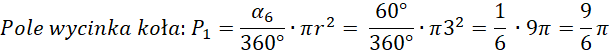 Oblicz pole wycinka koła dla kąta środkowego α6, korzystając ze wzoru: