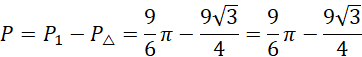 W tym zadaniu musisz obliczyć sumę pól odcinków koła wyznaczonych przez kąty α 3 i α 6, jeśli wierzchołki ośmiokąta należą do okręgu o promieniu 3 i każdy kolejny kąt środkowy, zaczynając od α 1 a kończąc na α 8, jest większy od poprzedniego o 10 ͦ.