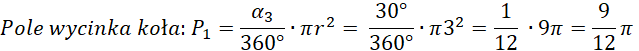 Oblicz pole wycinka koła dla kąta środkowego α3, korzystając ze wzoru: