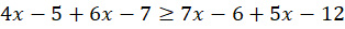 Uprość wyrażenie po prawej i lewej stronie nierówności – dodaj wszystkie wyrażenia z x oraz wyrazy wolne. Następnie przenieś wszystkie wyrażenia z x na lewą stronę, a wyrazy wolne na prawo. Podziel odpowiednio nierówność stronami. Pamiętaj o zmianie znaku nierówności przy mnożeniu/dzieleniu przez liczbę ujemną. Zapisz rozwiązanie jako przedział.