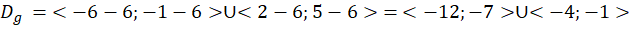 Zauważ, że wykres funkcji g jest przesunięciem wykresu funkcji f o 6 jednostek w lewo wzdłuż osi OX, zatem dziedzina funkcji g zmniejszy się o 6 jednostek: