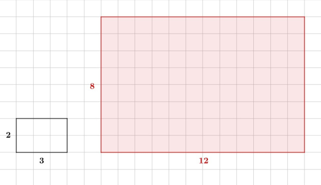 Aby skala podobieństwa drugiego czworokąta do pierwszego wynosiła 4, to jego wymiary muszą być cztery razy większe od wymiarów wyjściowej figury.