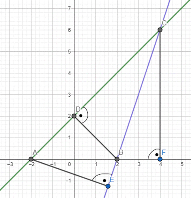 Rozwiąż układ równań, aby znaleźć punkt przecięcia: