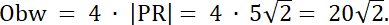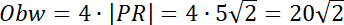 · Obwód rombu to cztery razy długość jego przekątnej PR.