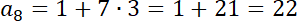 Zauważ, że jeśli między liczby 1 i 25, masz wstawić siedem liczb, to 1 jest pierwszym wyrazem ciągu arytmetycznego, a 25 dziewiątym.