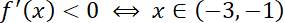 Określ maksymalne przedziały monotoniczności funkcji, dla której przedstawiono wykres jej pochodnej.