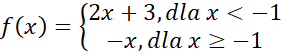 dla wszystkich x mniejszych od -1. Dla x większych lub równych -1 naszkicuj funkcję liniową malejącą