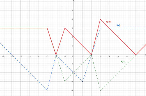 Rysując funkcję g(x), pamiętaj, że najpierw musisz odbić ją względem osi OY, a następnie zrobić wartość bezwzględną z całej funkcji i to, co pod osią OX przenieść nad nią.