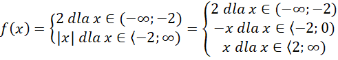 zapisz bez użycia symbolu wartości bezwzględnej, zauważ, że jeśli jest to liczba dodatnia, to jej wartość bezwzględna jest tą liczbą, a jeśli jest to liczba ujemna, to jej wartością bezwzględną jest liczba przeciwna tego, że jedno będzie należało do przedziału
