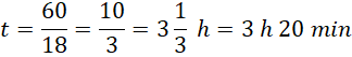 Ustal, ile czasu zajmie rowerzyście pokonanie całego dystansu mającego długość 60 km, jeśli będzie jechał z prędkością 18 km/h.