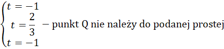 w układzie równań wstaw współrzędne punktu P. Rozwiąż powstałe równania. Zauważ, że punkt P będzie należał do podanej prostej, jeśli wartość